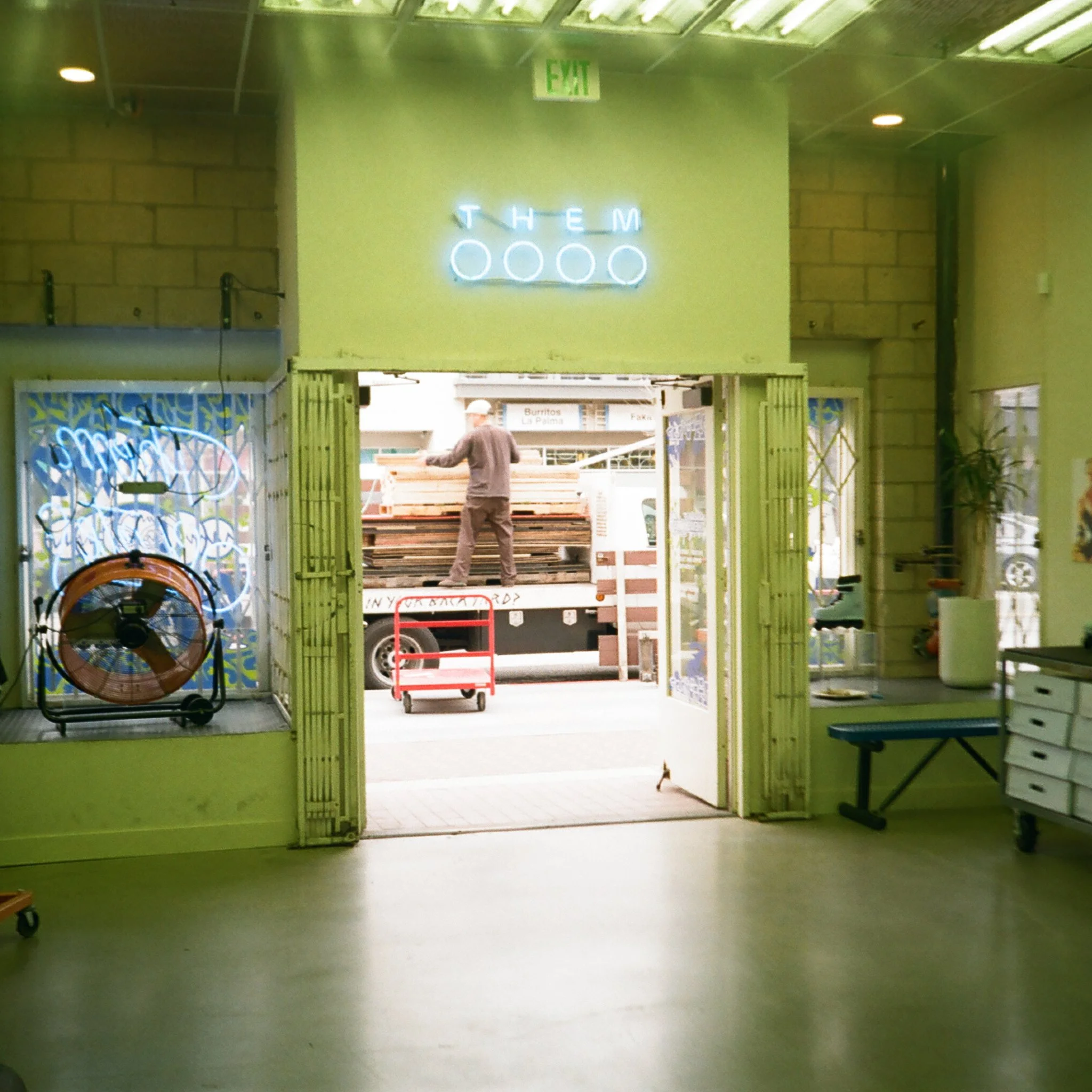 The title says it all! THEM SKATES got a mini ramp installed at the shop. When Jon told me about it, I was very excited. An indoor ramp. Another excuse to go hang at the shop with my friends. And to quote Kevin Dowling, “Jon having a mini ramp in his office is good for everyone.” So Keene Ramps did the build, and we watched them patiently construct the 4 foot high, 16 feet wide beauty in the span of about 6 hours. As soon as it was done, before they could even sweep the sawdust we were putting our skates on! I’ve gotta say it’s been awesome to see the shop grow over the years. From the first warehouse to this new location in downtown Santa Ana. Congrats Jon, and THEM SKATES. Thanks for letting me be a part of it.
